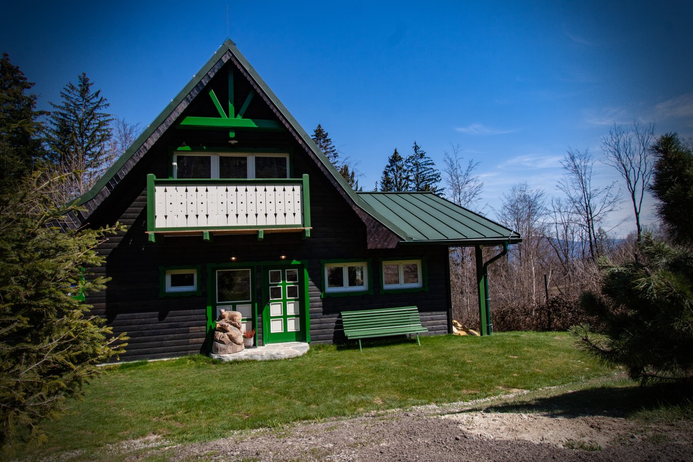 Okázale luxusní a přitom skromná. Jezevčí brloh je přesně takový. Chata zapomenutá v čase a probuzená tím nejlepším co si lze představit - masivní dřevo, kachlová kamna, přírodní kámen, pohodlné spaní, dokonalá kuchyň a ta jídelna ...po výhledu z ní se Vám bude stýskat.