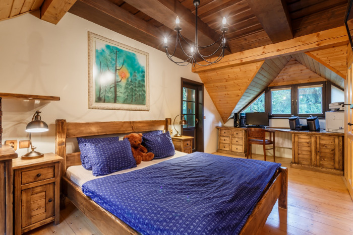 Medvědí skála je luxusní dům v lese, který ve vším komfortu poskytne klid a pohodu deseti dospělým osobám a taky jejich medvíďatům, která se tu skvěle zabaví. Je to atraktivní místo plné detailu, dřeva a přírodního kamene v architektuře doplněné sklem a prací uměleckého kováře.
