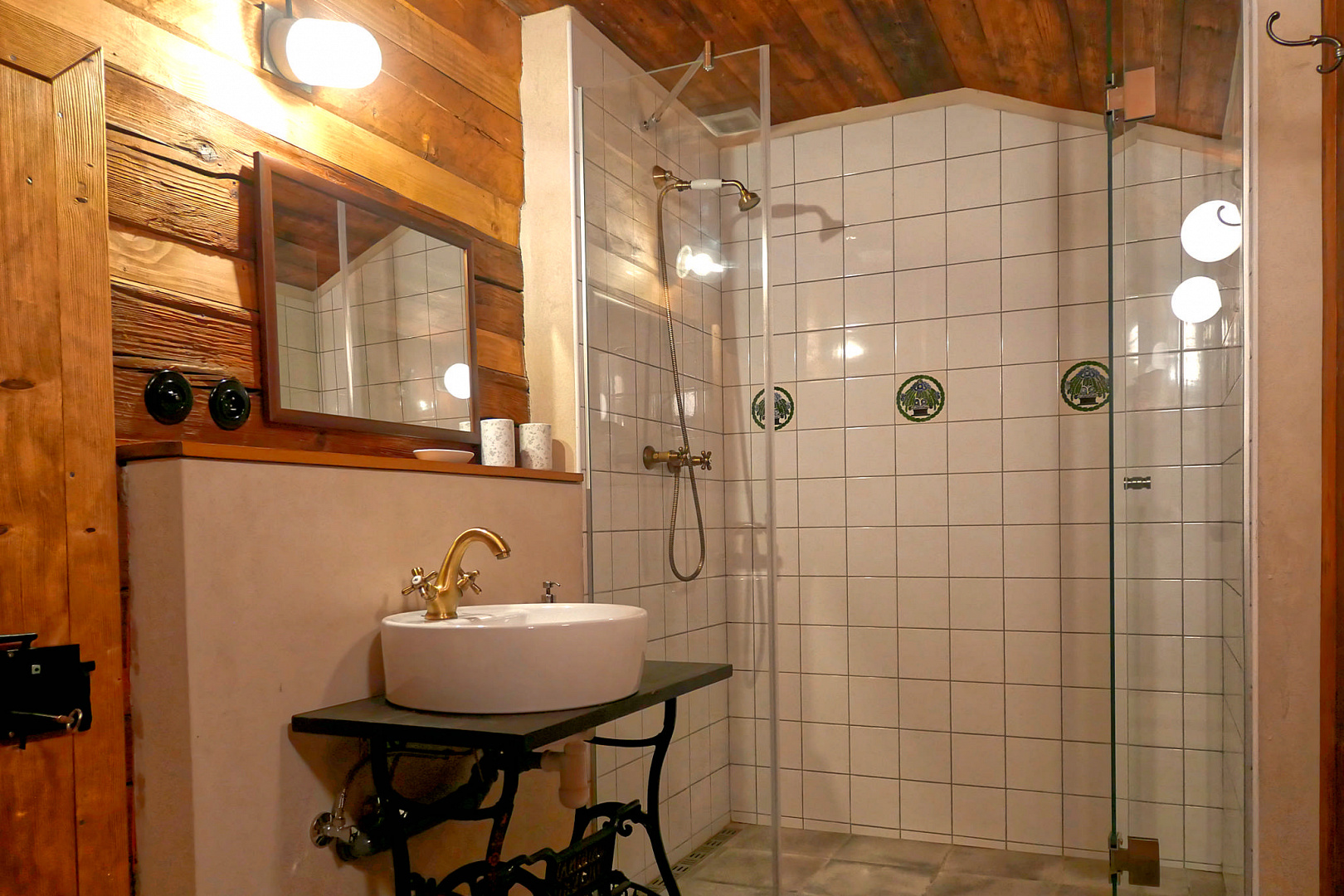 Sociální zařízení: Koupelna s WC a sprchovým koutem.