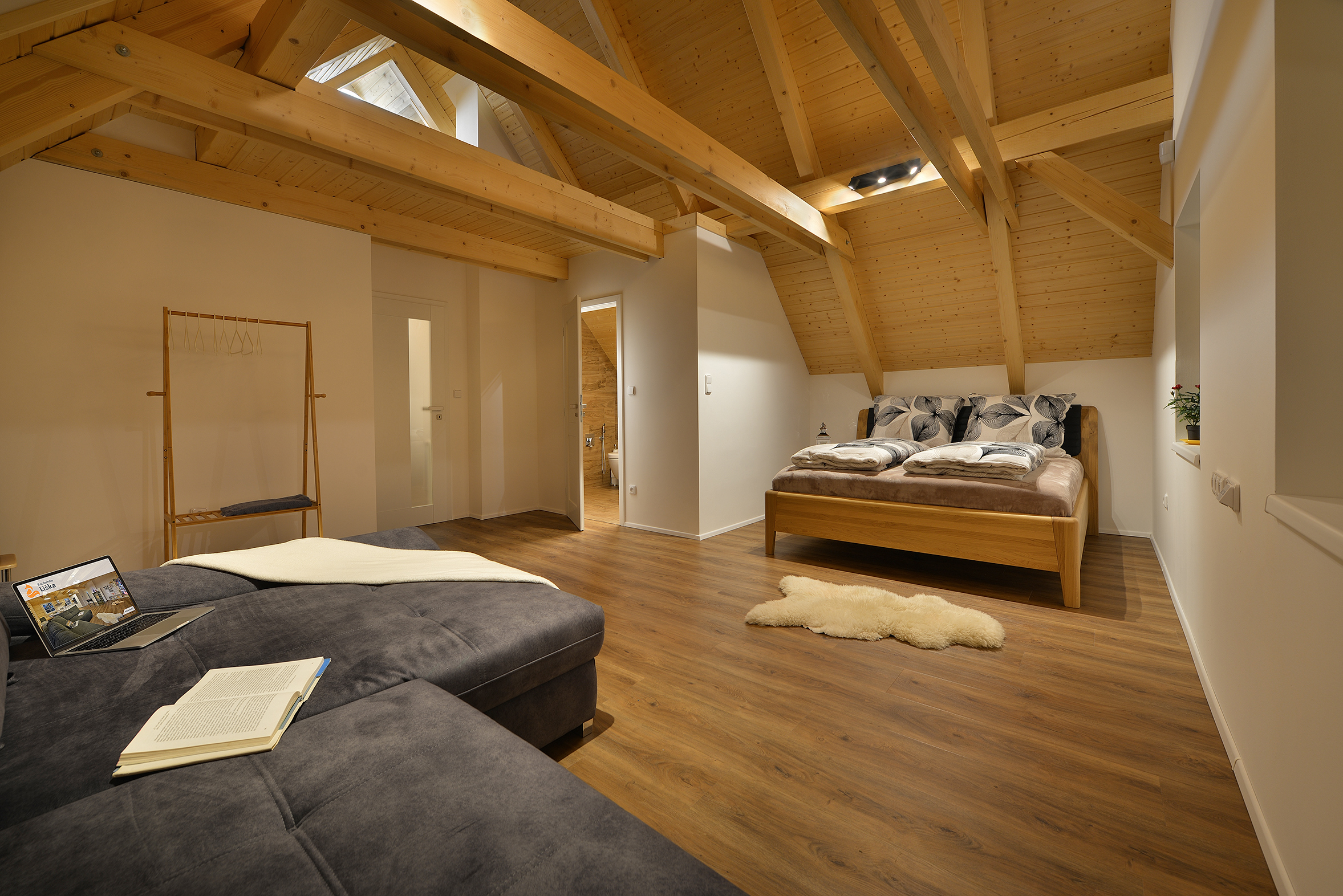 4 stylově zařízené pokoje s třemi koupelnami, celkem pro 12 osob